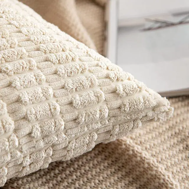 PolyesterQUALITY MATERIAL: The pillow cover is composed of a soft and comfy corduroy which is a kind of polyester fabric features a cute and elegant boho stripe design. Our pillow covers are of good workmanship they are tightly sewn without loose threads.