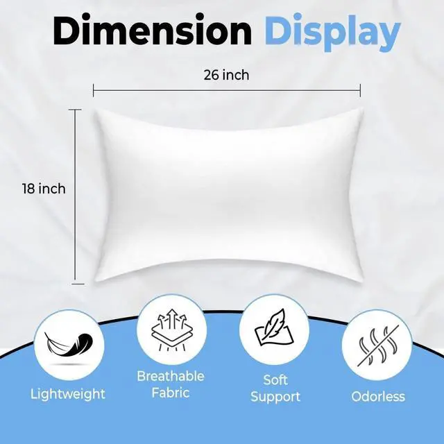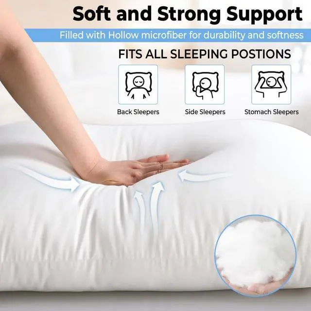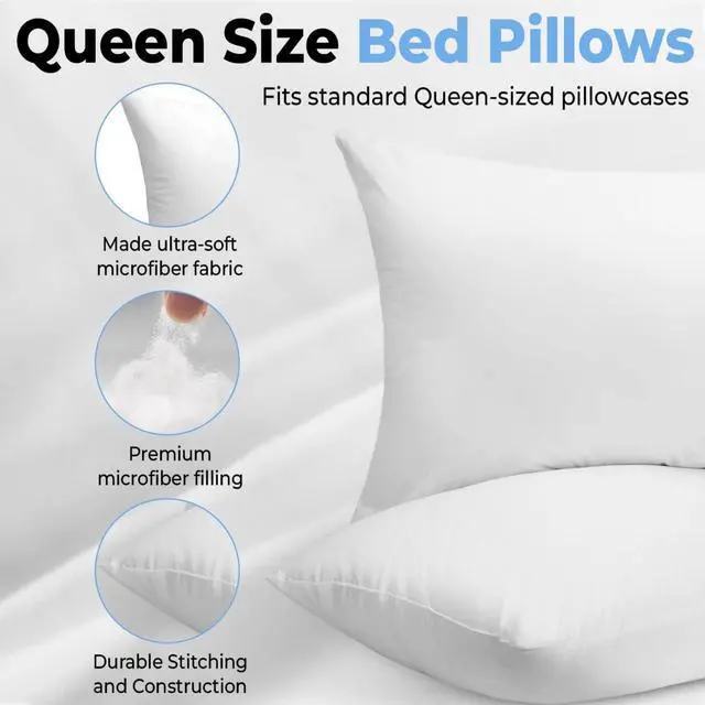 Luxurious Queen-sized bed pillows - Set of 2Medium density for a perfect balance of softness and supportDesigned for back side and stomach sleepersCrafted with premium down alternative fibers for a plush feelGenerously sized at 26 inches in length and 18 inches in widthFits standard Queen-sized pillowcasesElegant pure white color complements any bedroom decorPromotes proper spinal alignment and reduces pressure pointsEnsures a restful and rejuvenating sleep experience