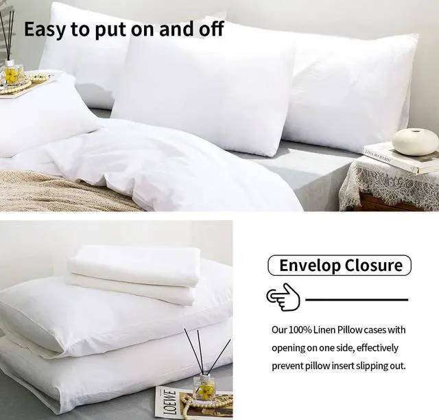 Heat conduction and moisture absorption is larger than cotton fabric you will get great nights sleep. Good color fastness not easy to fade. Anti-static and our linen pillow cover has a strong function of perspiration. Easy to Care - Gentle cycle washing under 60. Do not use detergent that contains bleach or whitener. Tumble dry with medium heat. Do not dry clean. Wash with similar colors. Linen fabric will becomes softer after every wash. Wrinkle is part of linen's charm - so ironing is optional. King Linen Pillow Cases Set Package Includes and Multiple Colors & Size- 2 linen pillowcase.