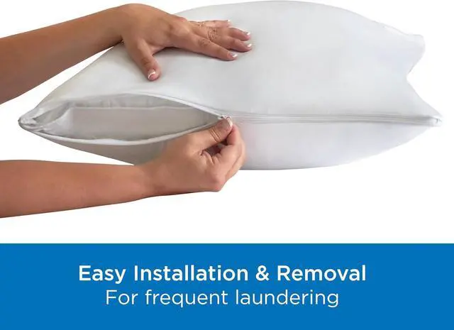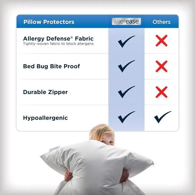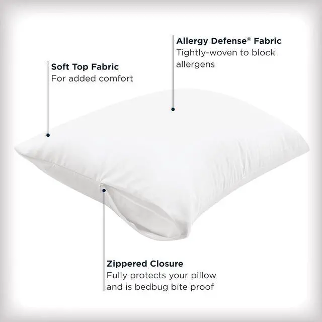 88% Polyester 12% NylonADVANCED ALLERGY PROTECTION AllerEase pillow protectors have tightly woven expertly-designed fabric to prevent unhealthy household particles from collecting in your pillow. EXTEND PILLOW LIFE Fully encasing your pillow with a durable and comfortable zippered protector extends the life of your pillow by keeping it fresh and clean. BREATHABLE FABRIC Made of breathable fabric that wont alter the feel these protectors are soft to the touch. Plus they do not retain heat so you can get a comfortable and allergy-free nights sleep. QUIET NIGHT With a soft quiet cover AllerEase pillow protectors help you sleep comfortably through the night.