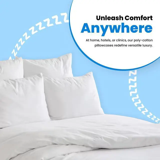 DURABLE AND LONG LASTING - Discover the ultimate high-end experience with our soft and durable white pillow covers. breathable and cool to the touch our soft pillow protectors will create a great sleeping experience! The cotton blend material is processed to make them long lasting. GREAT FOR - These poly cotton pillow cases are perfect for your home hotels motels massage centers clinics and camps as these hotel pillowcases will add some elegance and vibrant look to the space. CARE INSTRUCTIONS - For making these pillow cover last longer machine wash them on low wash light color cotton items separately from dark color cotton items tumble dry and iron on low temperature and do not bleach them.