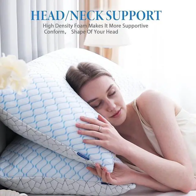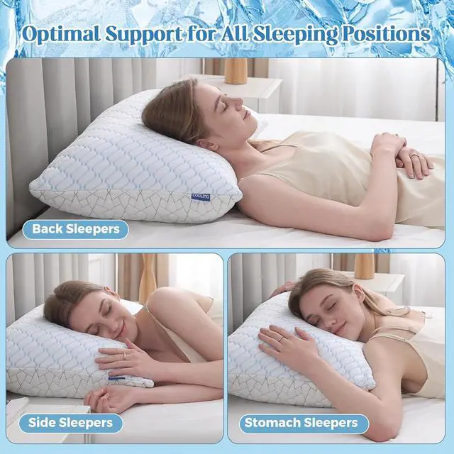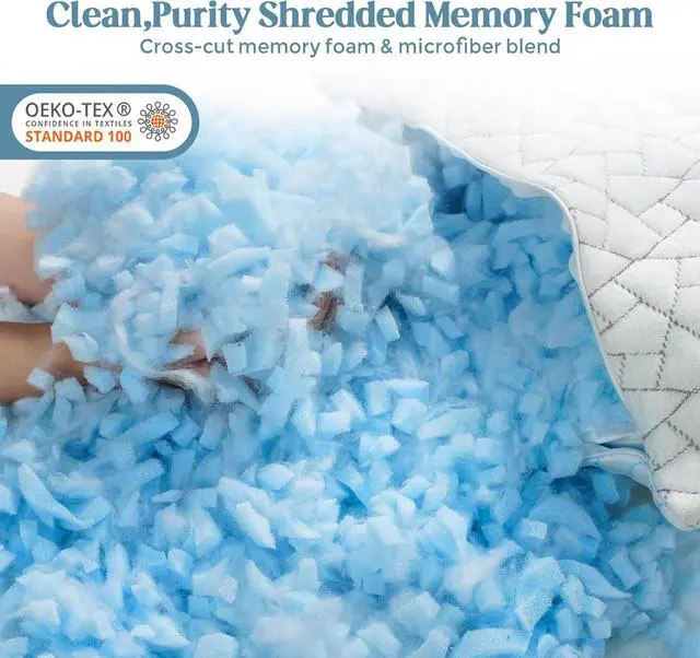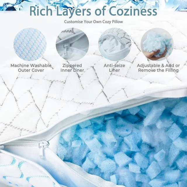 Personalized Comfort: Our memory foam pillows standard size set of 2 are filled with ample shredded memory foam and come with zippered inner and outer covers that allow you to customize your own bed pillow by adding or removing fillings. The adjustable feature allows you to customize the pillow's height providing personalized support to your head neck and shoulders. Cooling &Soft