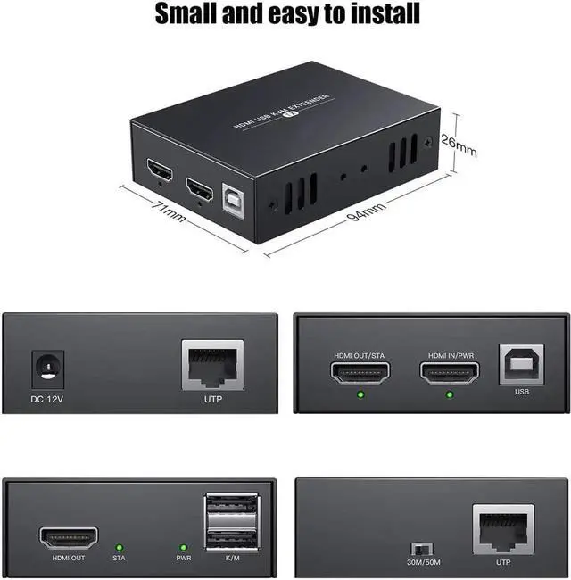 • HDMI KVM USB Extender Transmit 1080p HD Video Over Cat5e/6 Ethernet Cable 50m (164ft) for Mouse and Keyboard Control Remote Signals