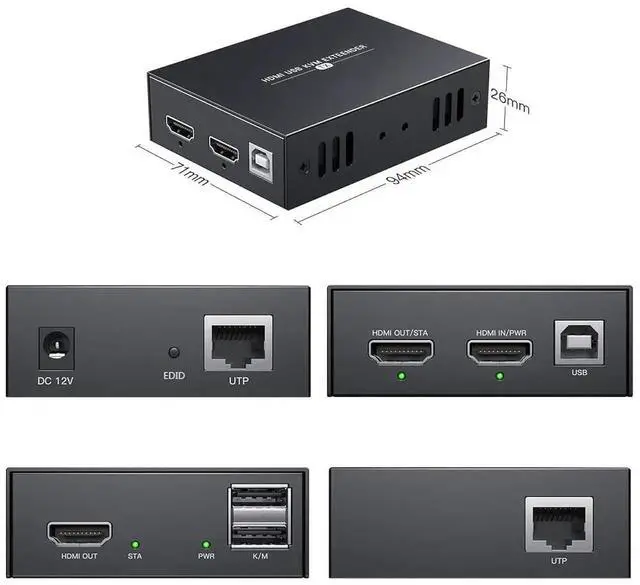 Hdmi Kvm Usb Extender Transmit 1080P Hd Video Over Cat5E/6 Ethernet Cable 50M (164Ft) For Mouse And Keyboard Control Remote Signals