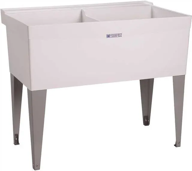 If you are looking for a utility sink, the MUSTEE 27F 40 in W x 24 in L x 34 in H Floor Mount Thermoplastic Laundry Tub is an excellent choice. The floor mount sink has a bowl size of 24 in x 20 in and a bowl depth of 12 3/4 in. This rectangular white thermoplastic laundry tub has an overall height and length of 34 in. and 24 in. respectively, with an overall width of 40 in. It comes with two holes for faucet installation. If you want to replace your old utility sink or add one to your existing plumbing system, this MUSTEE Utility Sink will do the job perfectly.