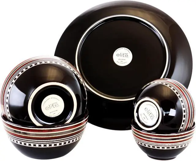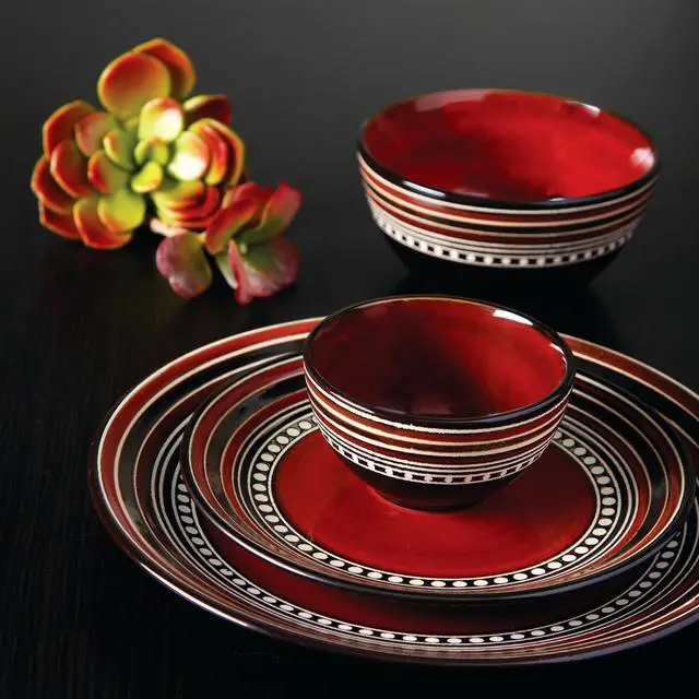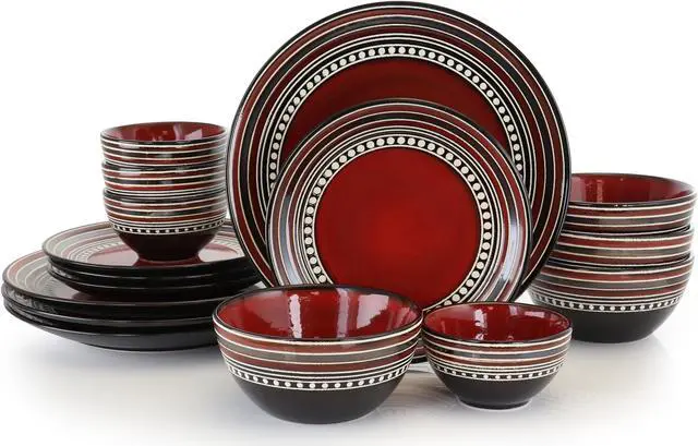 The Gibson Elite Café Versailles 16 Piece Double Bowl Dinnerware Set in Red is a beautiful addition to your table and home. This set offers an appetizing and colorful color pallet, accentuating any meal you choose to serve. Whether you are having a quiet dinner at home with the family or entertaining a large number of quests this set will serve as lovely companion. Dishwasher and Microwave safe for your convenience, making heating and clean up as simple as can be.