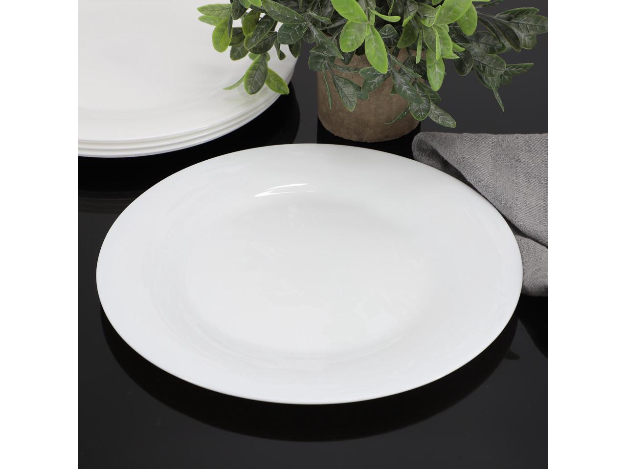 Gibson Ultra White Shadow 6 Piece 10 Inch Opal Glass Dinner Plate Set in White
