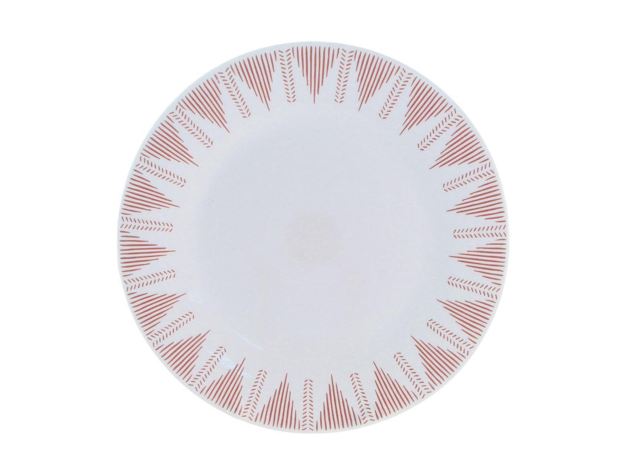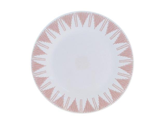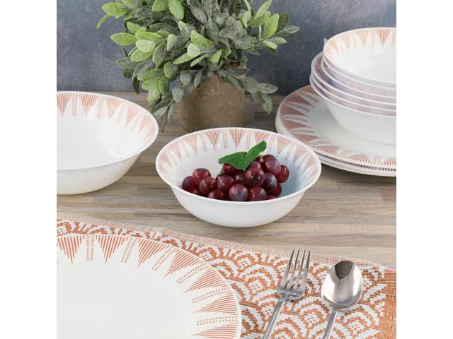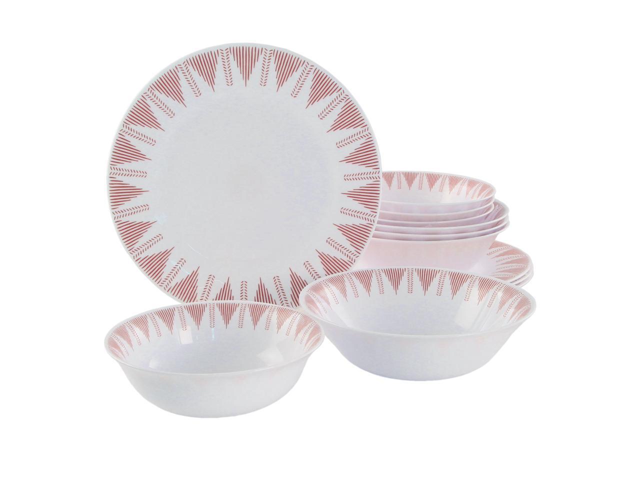 Ultra by Gibson Piper Point 12 Piece Opal Glass Dinnerware Set in White With Red Accents