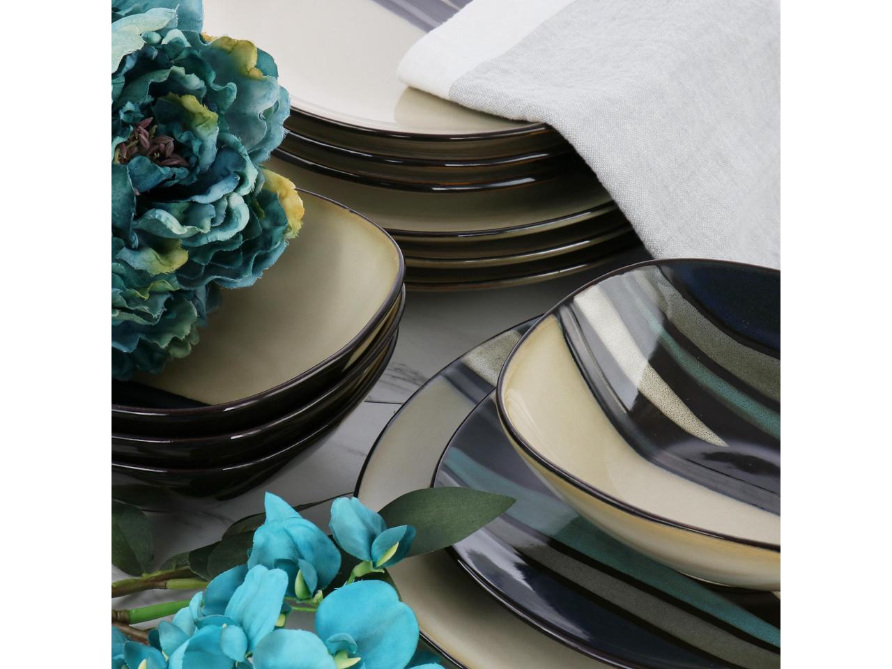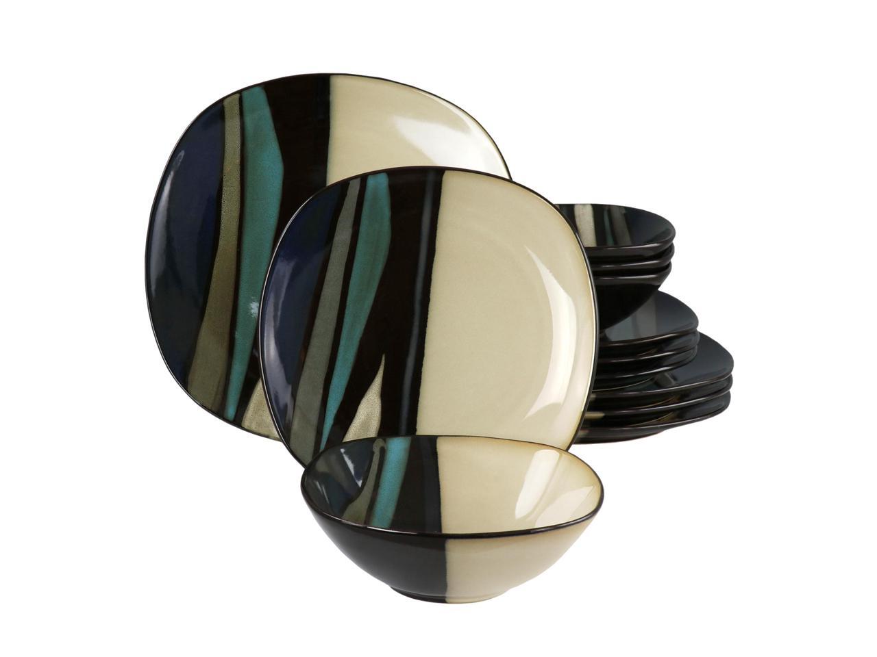 Hometrends Althea 12 Piece Soft Square Stoneware Dinnerware Set in Teal