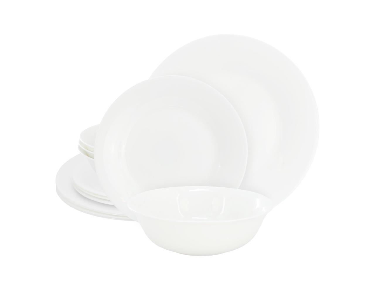 Gibson Ultra White Shadow 12 Piece Opal Glass Dinnerware Set in White