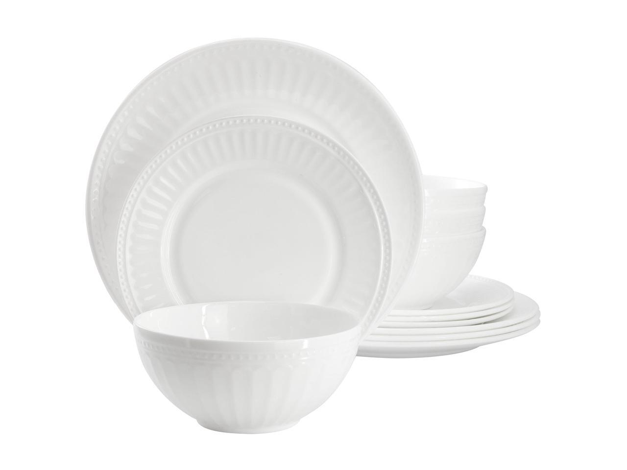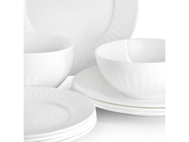 Ultra by Gibson Swanton Arch 12 Piece Break-Resistant Opal Glass Dinnerware Set in White