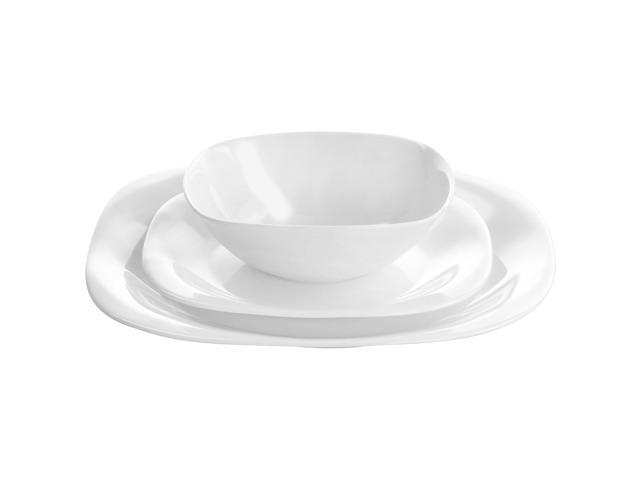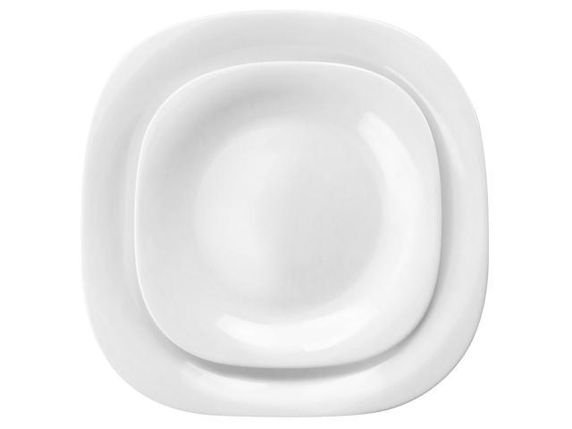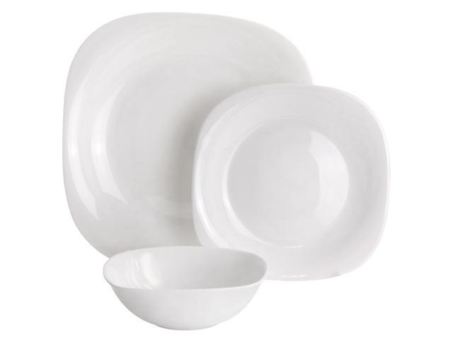 Gibson Ultra Piazza 18 Piece Soft Square Tempered Opal Glass Dinnerware Set in White