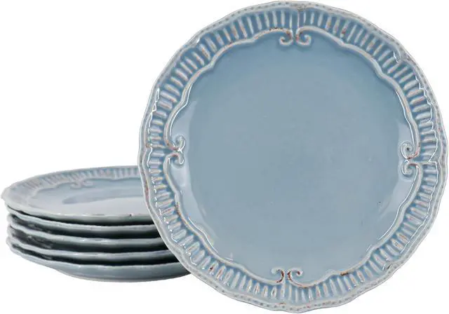 Modern Southern Home Capri 6 Piece 9 Inch Stoneware Embossed Dessert Plate Set in Blue