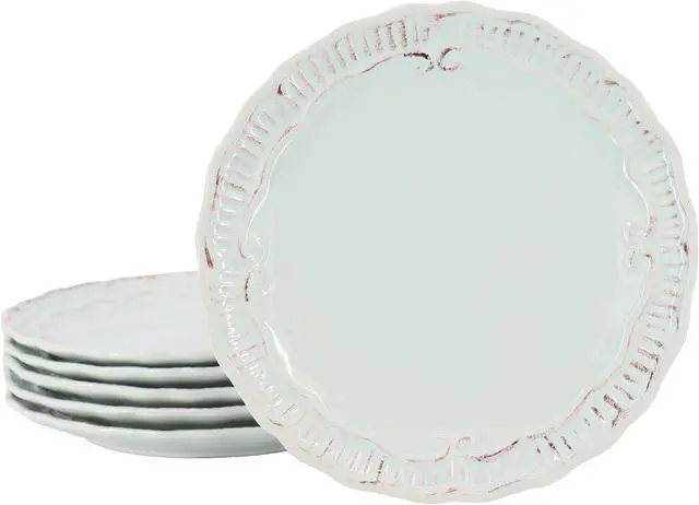 This beautiful Modern Southern Home Capri 6 Piece 9 Inch Stoneware Embossed Dessert Plate Set is the perfect dinnerware for your classical home. Gorgeous embossed patterns makes these dishes stand out on your table while variation in construction and paint gives each plate a completely unique look and feel. Being dishwasher and microwave safe, these dishes are convenient for everyday use. Bring a cozy and rustic feel to your home today with these Modern Southern Home plates.