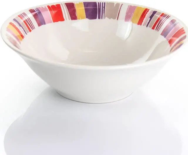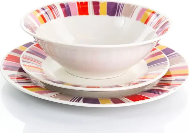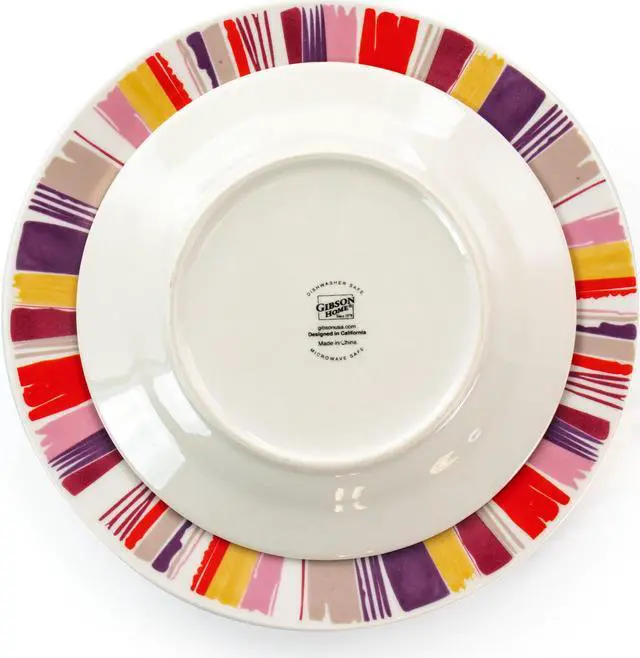 Garnish the dinner table with the colorful appeal of the Gibson Home Orleans 12 Piece Ceramic Dinnerware Set. Splash color into the room with the vibrant display printed along the edge of the plates. This full service for four is perfect for families or anyone living on their own. Each piece is dishwasher safe and microwave safe for complete convenience. This set can be featured in any occasion, from slow casual mornings to elegant evening parties.