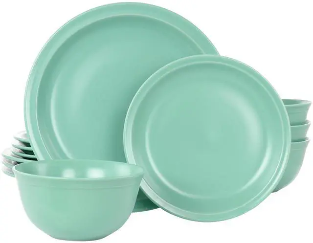 The Gibson Home 12 Piece Siam Stoneware Dinnerware Set is the perfect every day dishware set. Made of durable stoneware material that is dishwasher safe for easy clean up and microwave safe for convenient re-heating. Designed with a slight glossed matte finish and a vibrant tone that will go nicely with most home decor. Includes four dinner plates, four dessert plates, and four bowls to make four complete place settings.