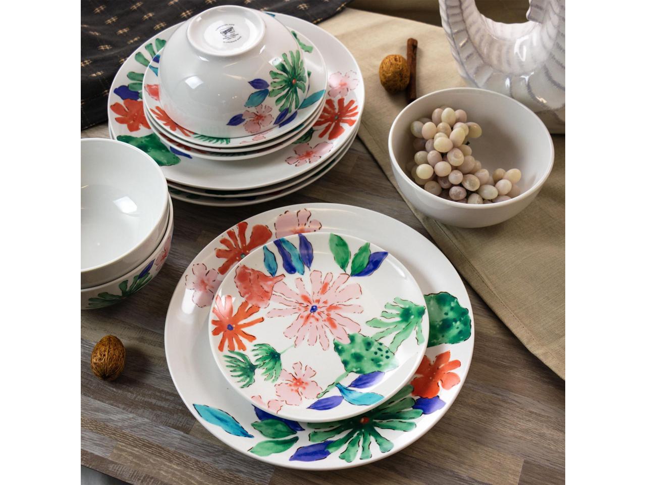 Gibson Home Dazzling Lily 12 Piece Ceramic Dinnerware Set
