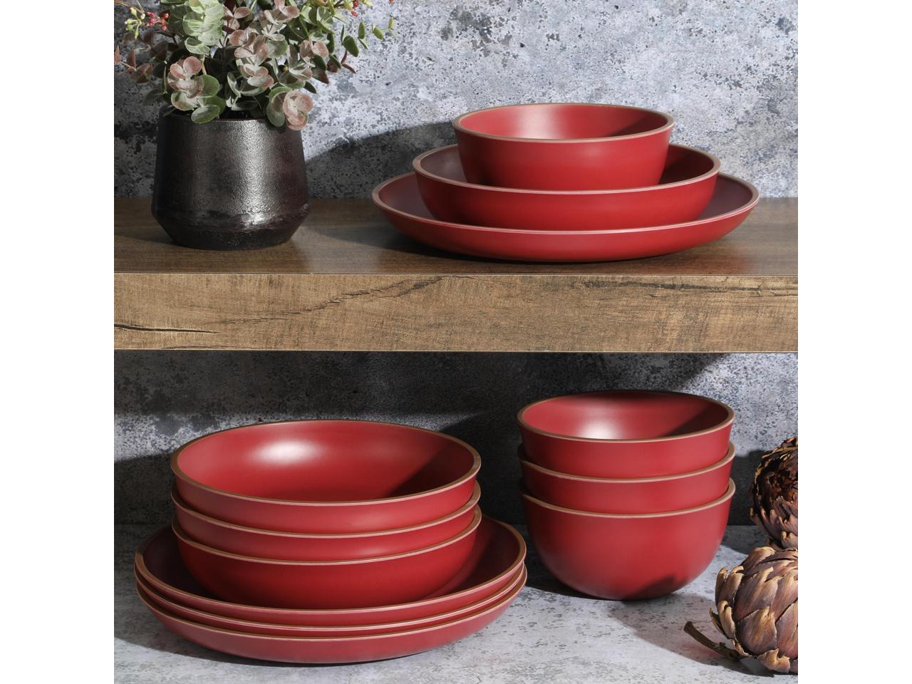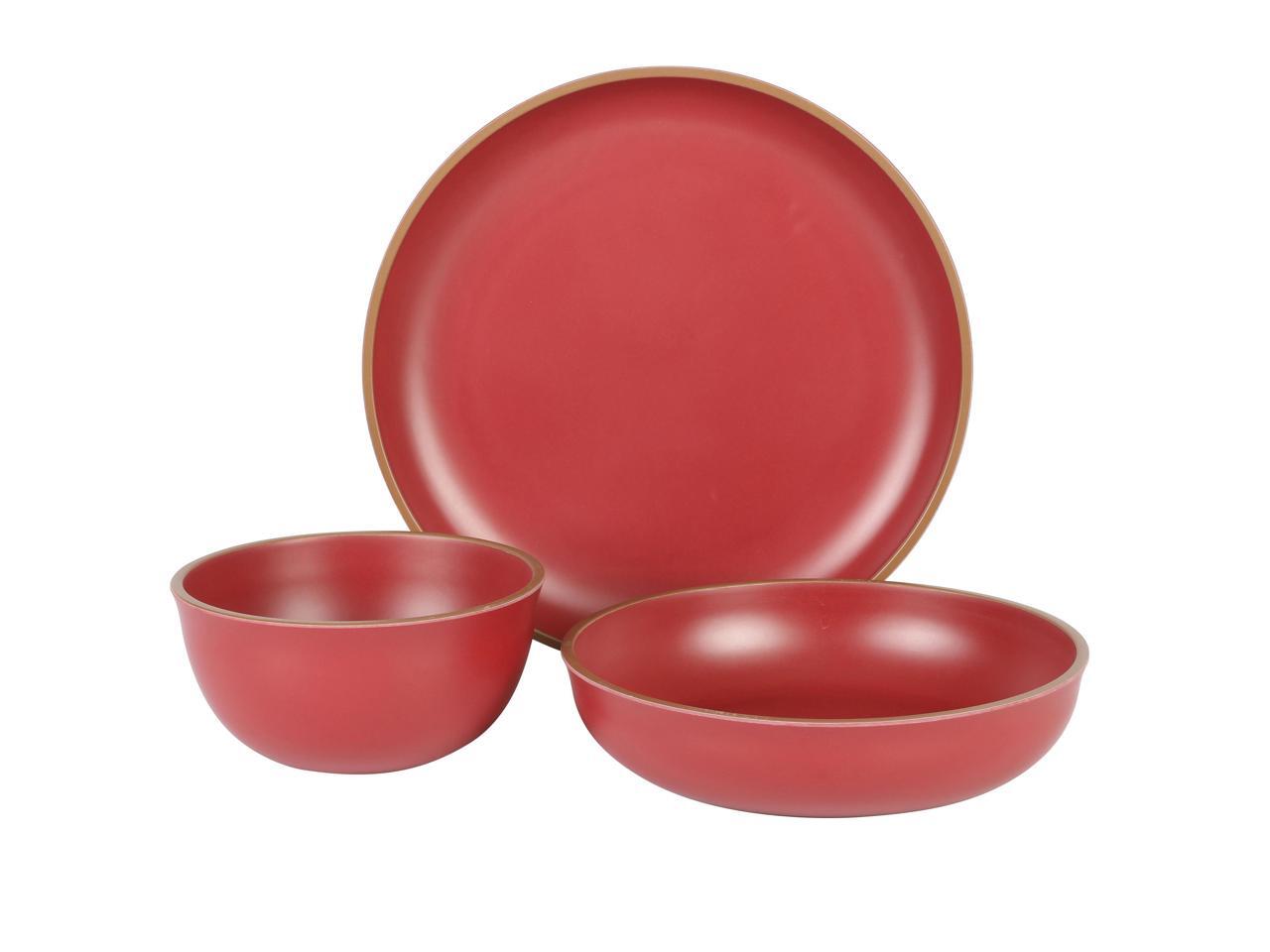 Gibson Home Rockabye 12 Piece Double Bowl Malemine Dinnerware Set in Red