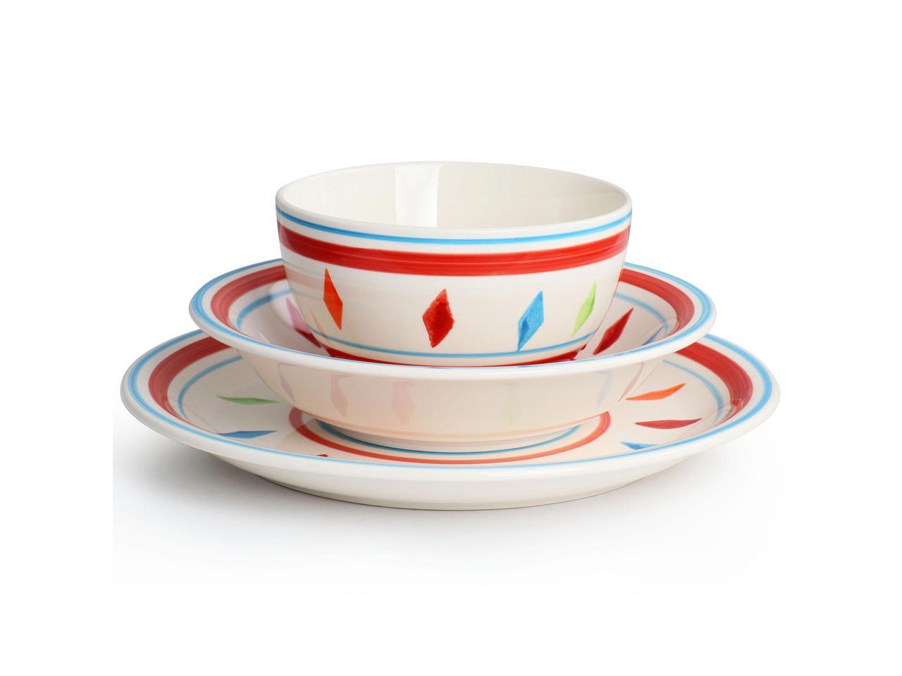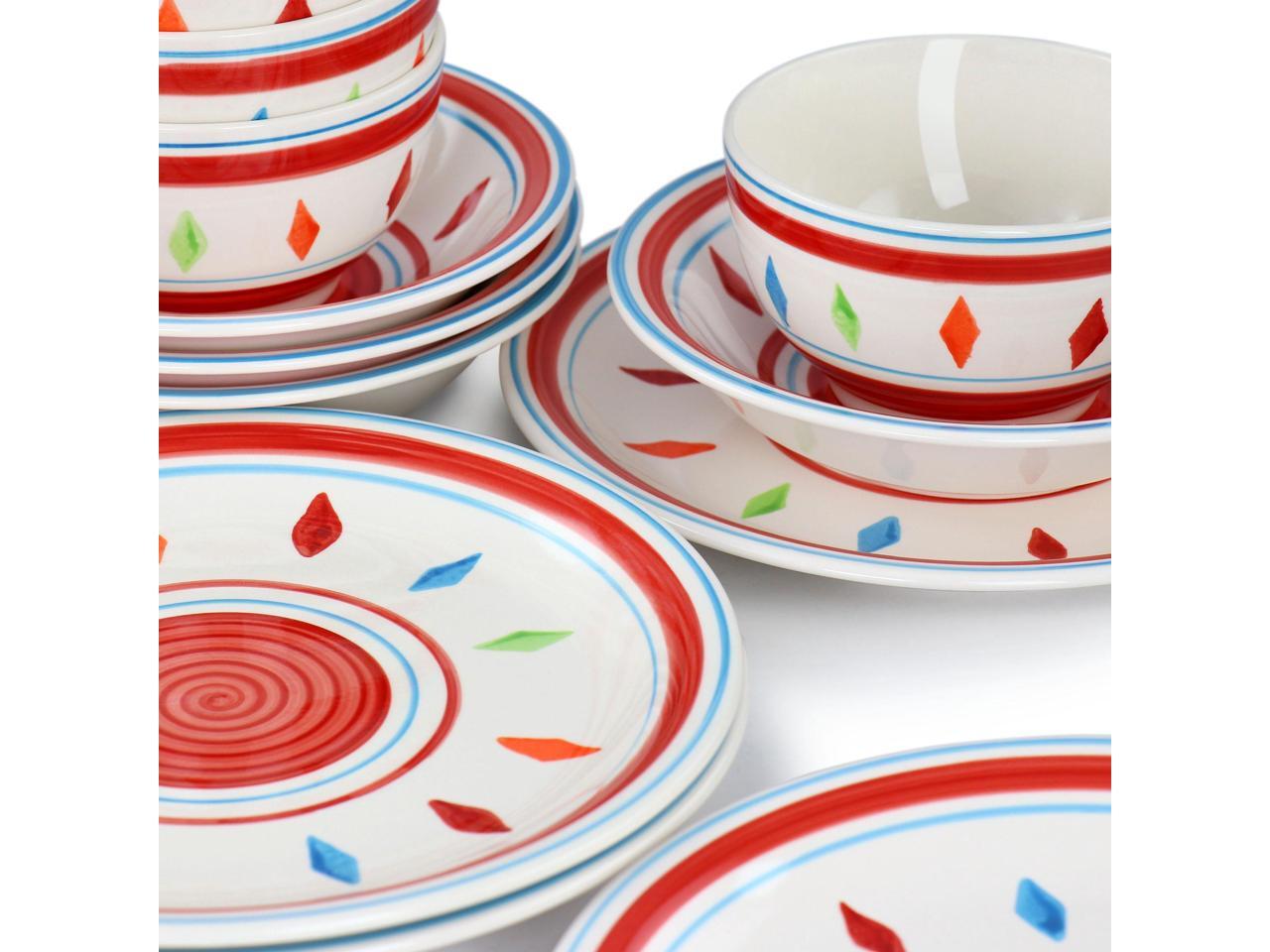 Gibson Home Heidy 12 Piece Hand Painted Durastone Dinnerware Set in Red
