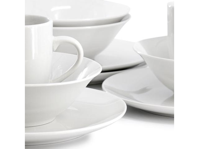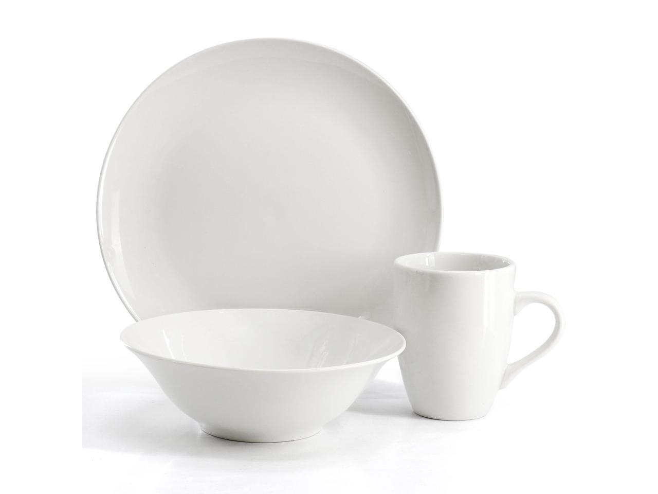 Four 9in dinner plates, four 7in bowls, and four 9oz coffee mugs