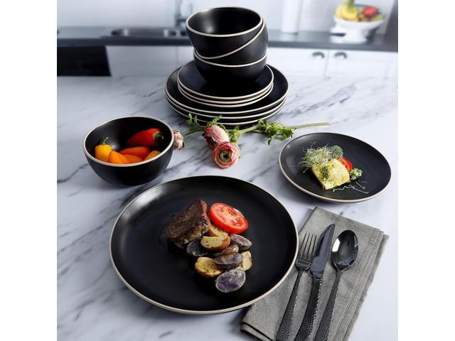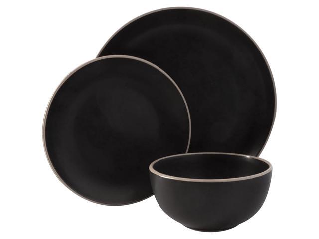 Gibson Home Rockaway 12 Piece Stoneware Dinnerware Set in Black