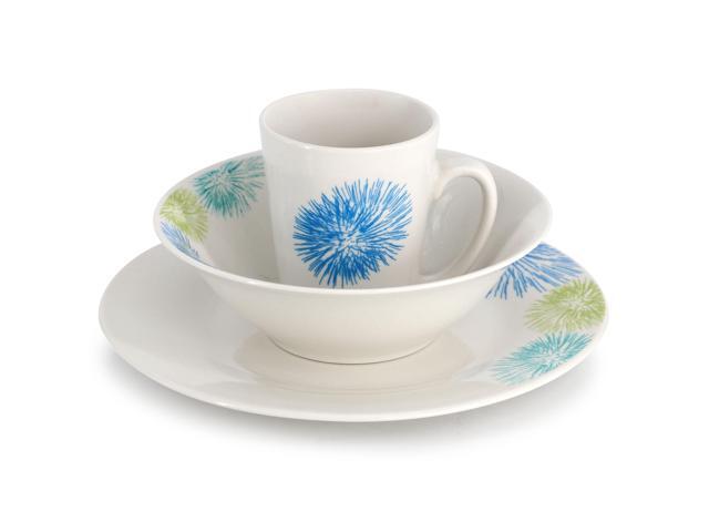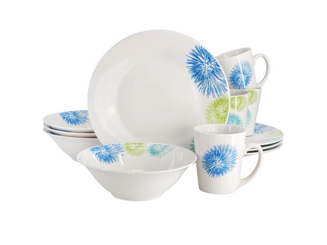 Gibson Home Blue Meadow 12 Piece Fine Ceramic Dinnerware Set in White with Colored Accents