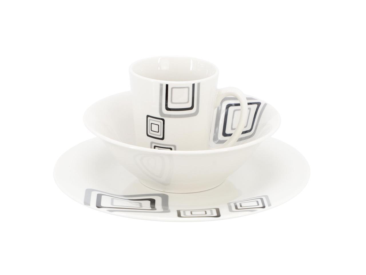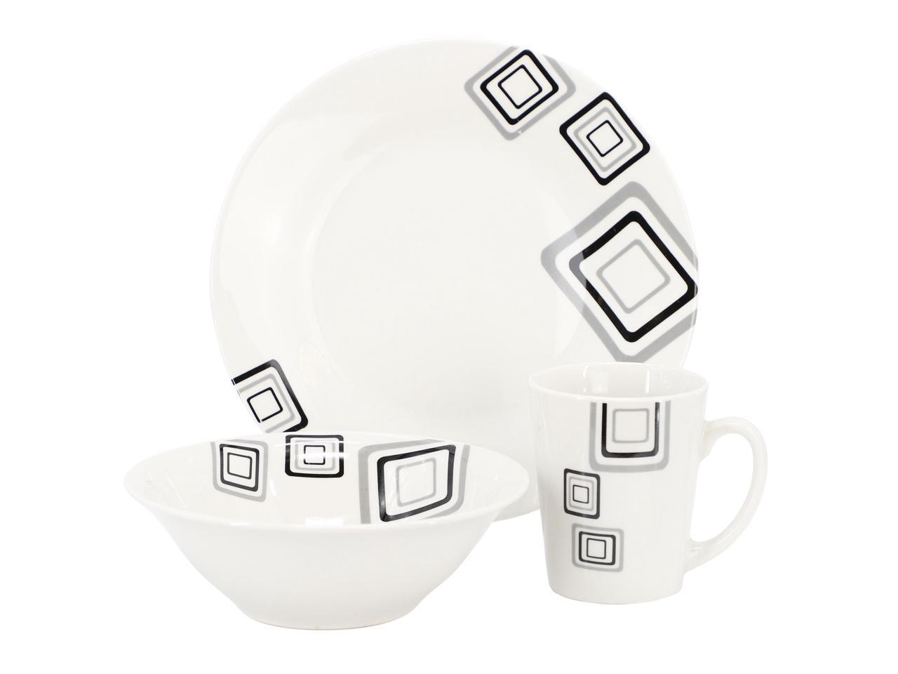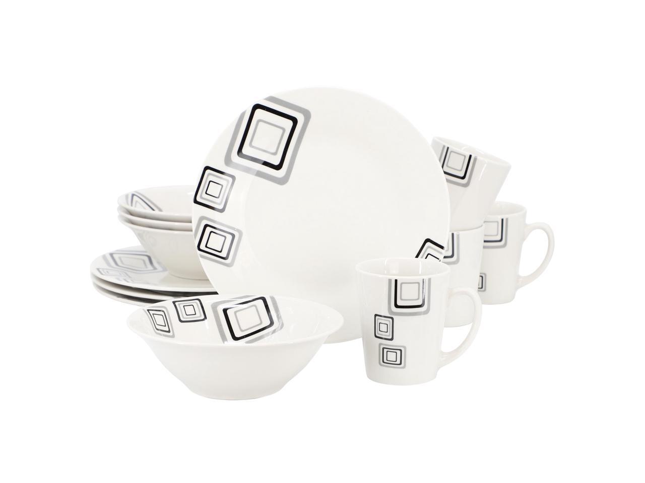 Gibson Home Black Squares 12 Piece Round Fine Ceramic Dinnerware Set in White