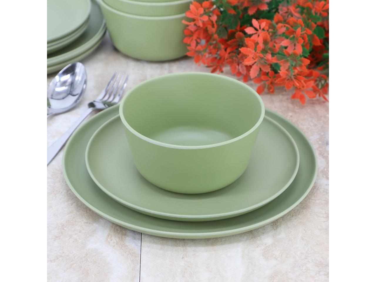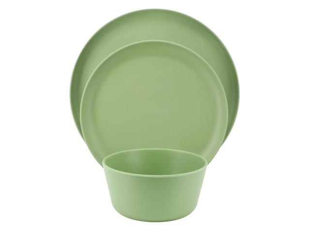 Gibson Home Fairhope 12 Piece Melamine Round Dinnerware Set in Matte Green
