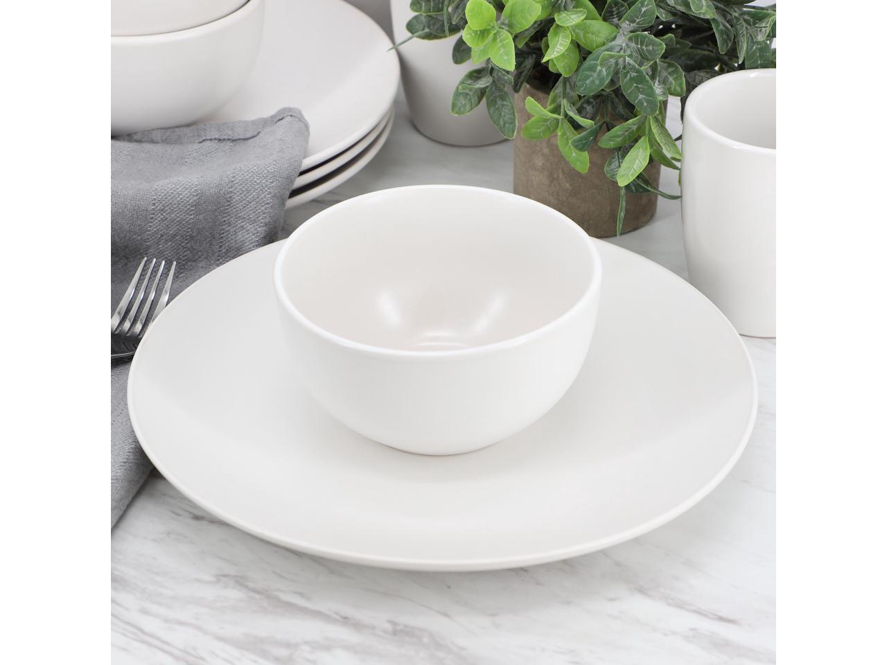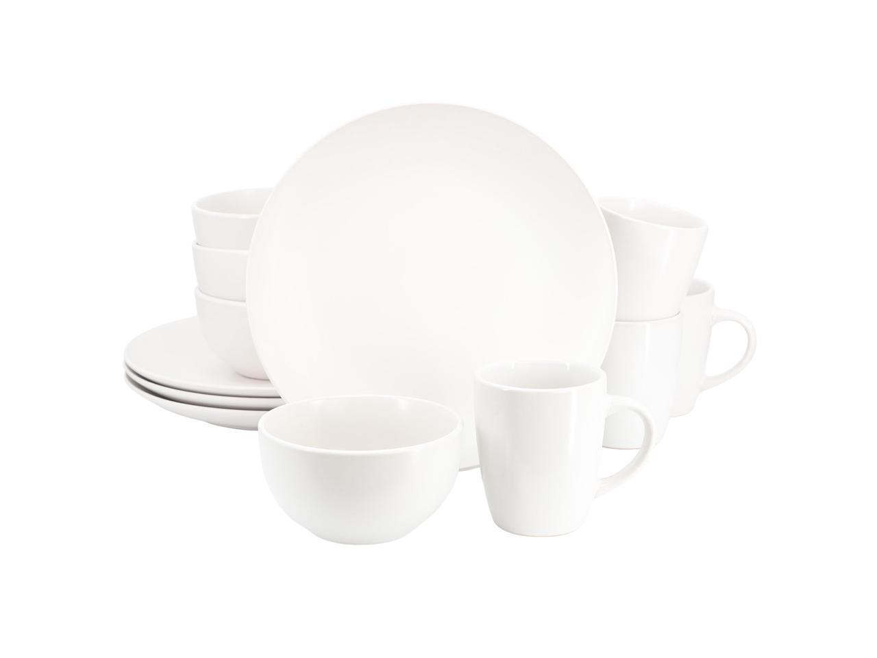 Gibson Home Everyday Plus 12 Piece Round Stoneware Dinnerware Set in White