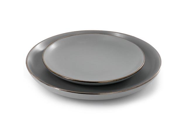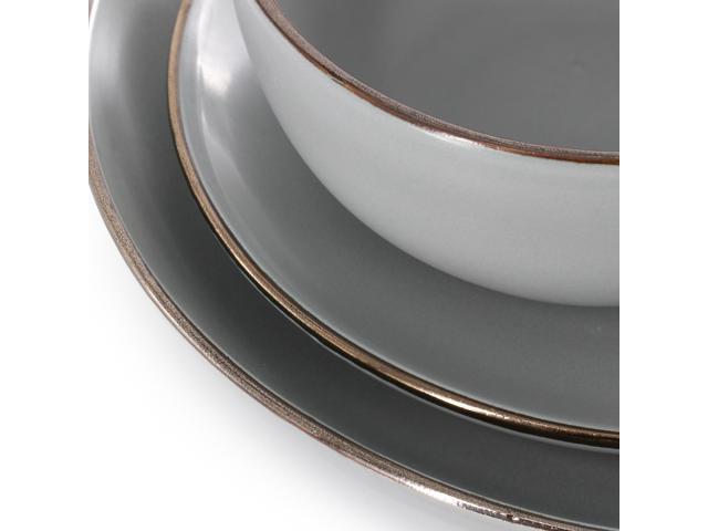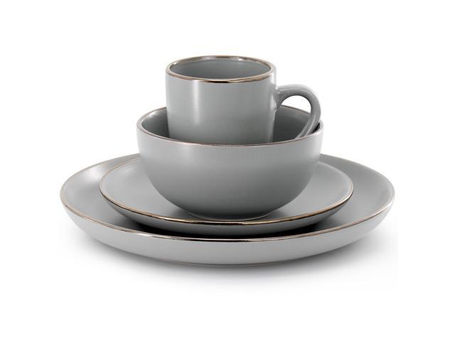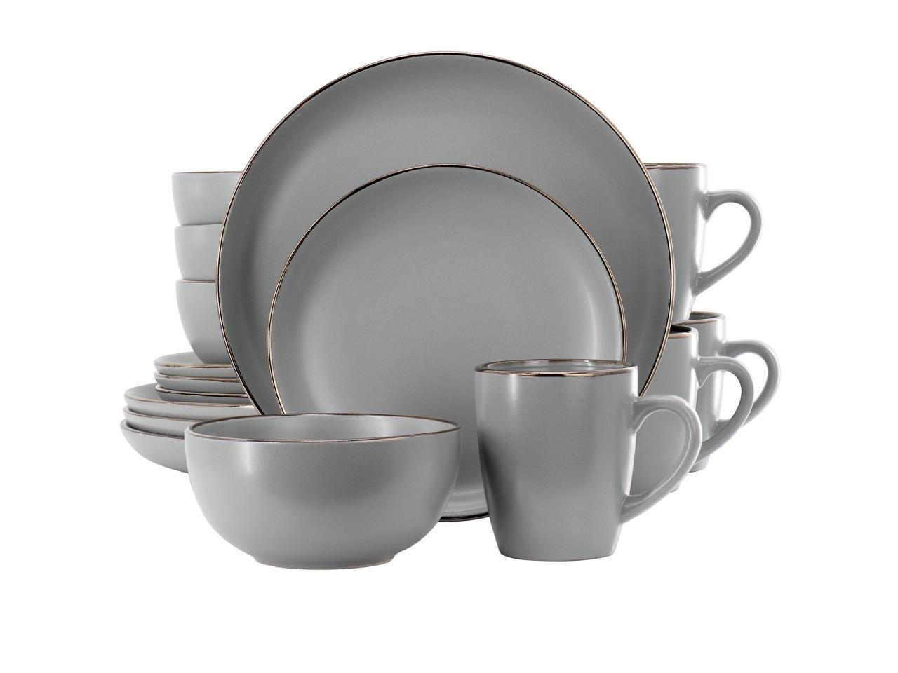 Gibson Home Rockaway 16 Piece Gold Rimmed Dinnerware Set in Grey