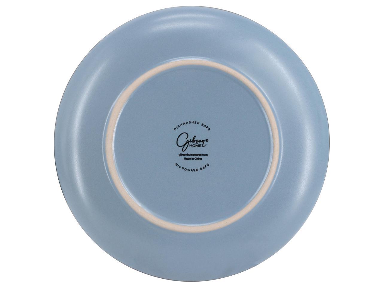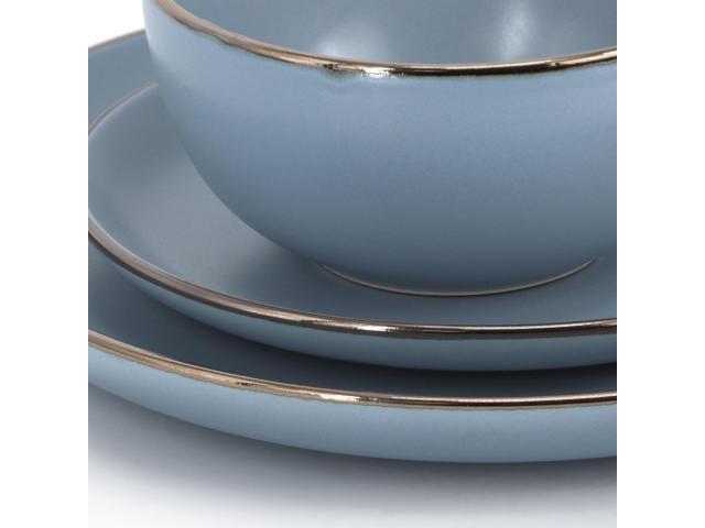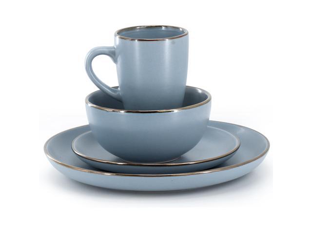 Gibson Home Rockaway 16 Piece Stoneware Metallic Rim Dinnerware Set in Matte Blue