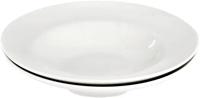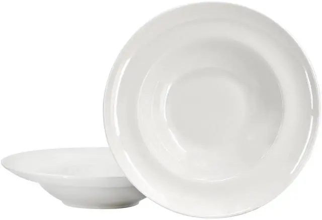 Enjoy your favorite soups, salads, entrees, pastas and more with this classic 2 piece entree bowl set! These bowls feature wide rims and a shallow base to fit a variety of food types. Simple design makes this 2 piece set easy to add to you existing tableware. Fine ceramic construction is dishwasher and microwave safe for easy reheat and clean up.