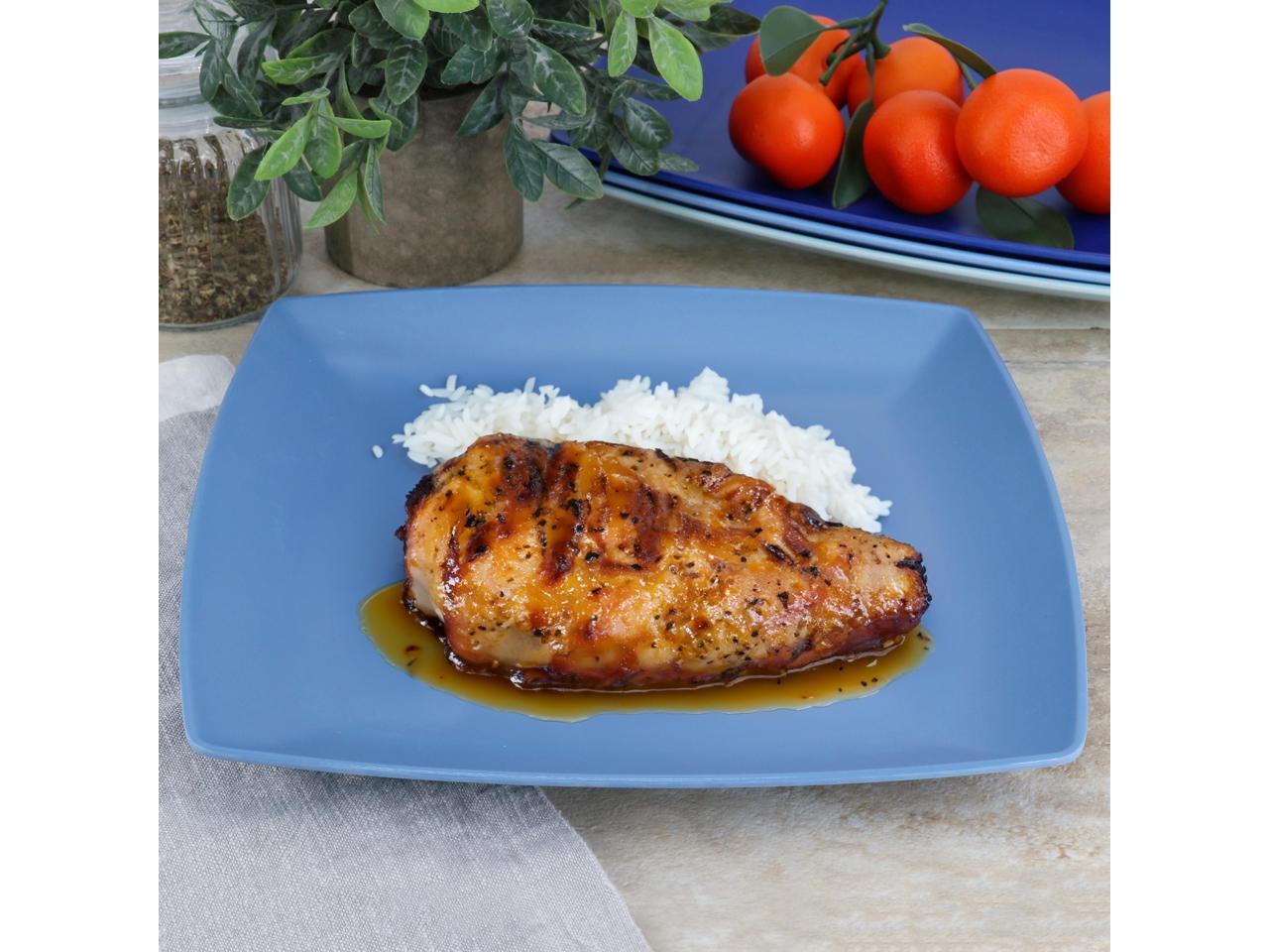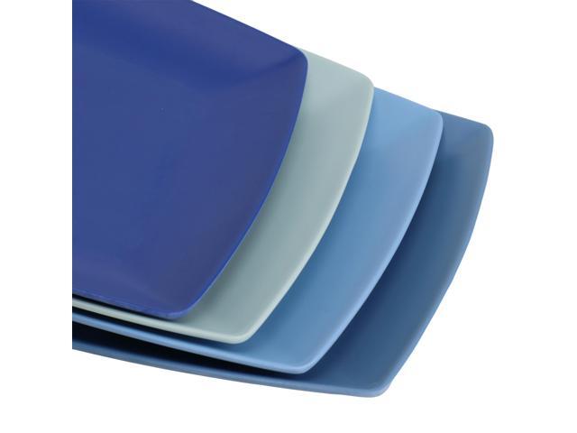 Gibson Home Grayson 4 Piece 10.5 Inch Square Melamine Dinner Plate Set in Assorted Blue