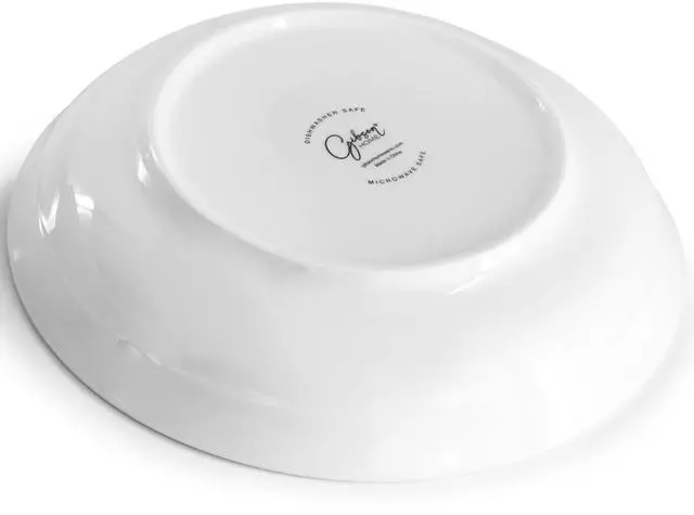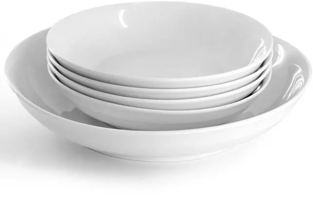 Serve up your favorite pasta dishes in this 5 piece serving bowl and pasta bowl set by Gibson Home. This Beautifully classic and simply designed set lets your favorite foods speak for themselves when serving and will go well with most home and kitchen motifs. Set comes with a large 11in serving bowl to put your main dish in and four additional pasta bowls for sharing with friends and family. Durable stoneware construction is dishwasher and microwave safe for easy clean up while the glossy finish adds an extra shine to your table.