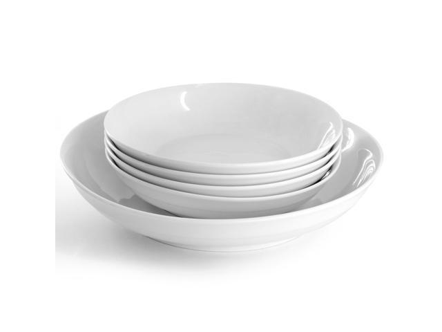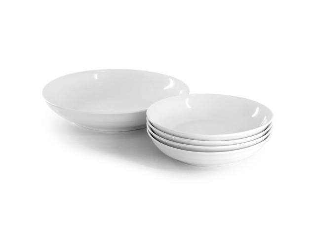 Gibson Home Great Essentials 5 Piece Fine Ceramic Serving Bowl and Pasta Bowl Set in White