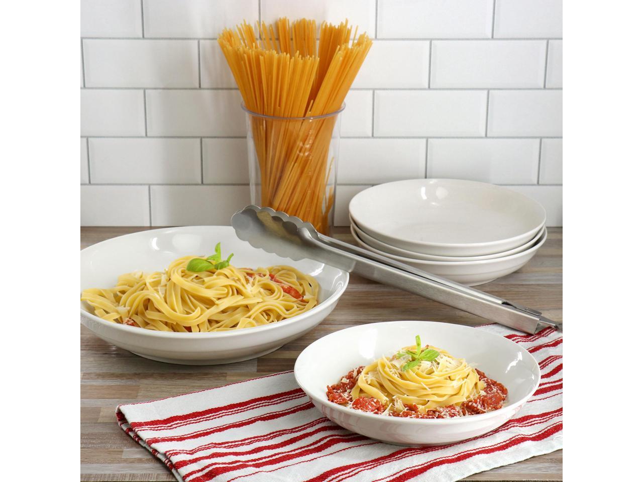 - Set: One 11in serving bowl and four 7.8in pasta bowls