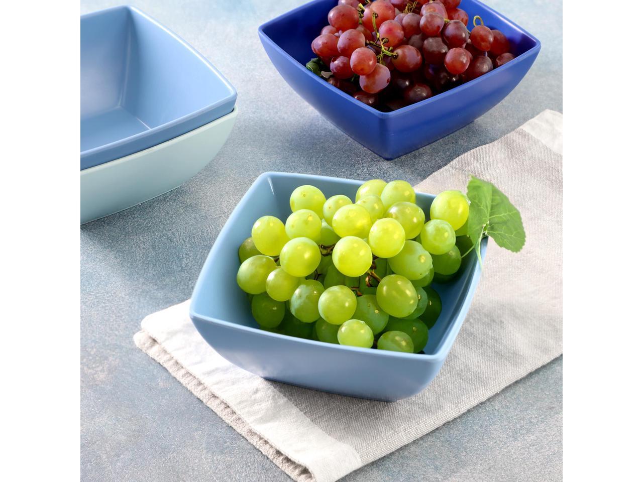 Gibson Home Grayson 4 Piece 6 Inch Square Melamine Dinner Bowl Set in Assorted Blue