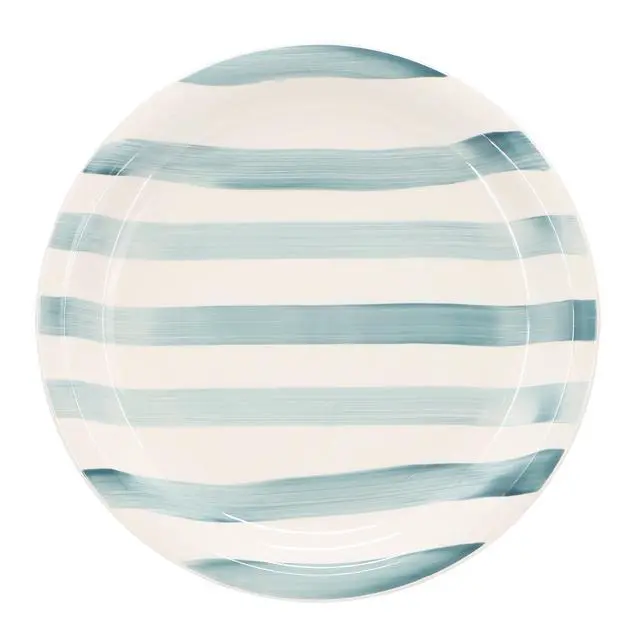 The Gibson Home Kenwood Shores 12 Piece Stoneware Dinnerware Set brings a blend of artisanal charm and everyday functionality to your dining table. Crafted from durable stoneware with a glossy finish, this set features a handpainted stripe pattern that adds a touch of rustic elegance to any meal. Designed for service for four, it includes four 10.5-inch dinner plates, four 7.5-inch dessert plates, and four 5.5-inch cereal bowls, making it perfect for casual family dinners or entertaining guests. The round shape and carefully crafted design create a cohesive and inviting table setting.