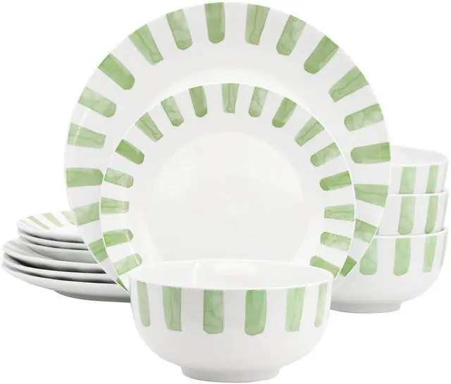 Gibson Home Pacific Waves 12 Piece Round Ceramic Dinnerware Set in Green