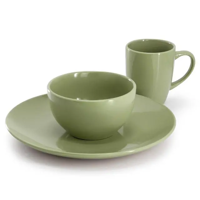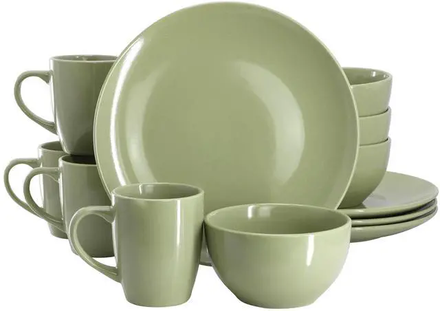 The Gibson Home Everyday Plus 12 Piece Stoneware Dinnerware Set in Sage Green is the perfect blend of style and functionality for everyday dining. Designed to serve four, this set includes four 10.6 -inch dinner plates, four 5.2 -inch cereal bowls, and four 12oz mugs-making it ideal for family meals, casual gatherings, or daily use. Crafted from durable ceramic with a classic round shape, each piece features a smooth, glossy finish and a soft sage color that complements a wide range of table settings. The simple, elegant design offers a timeless look that works well in both modern and traditional kitchens.