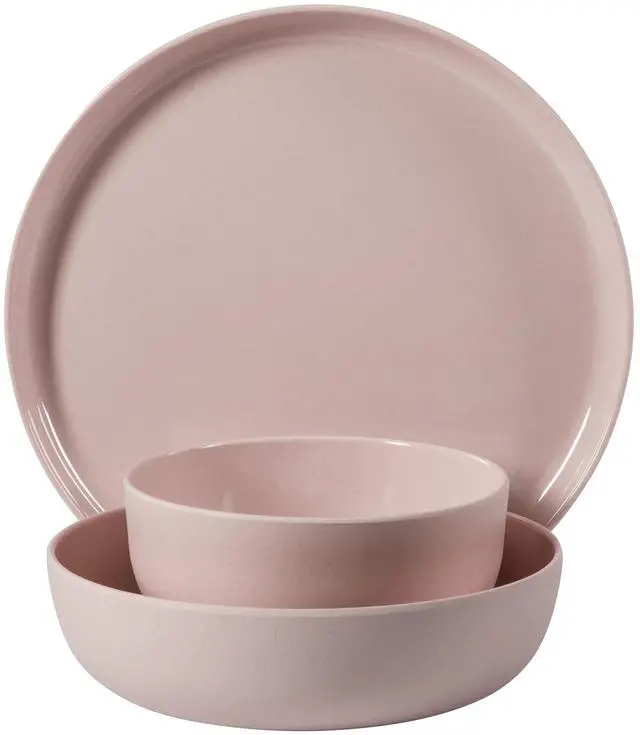 Gibson Home Candy Skies 12 Piece Wheat Straw Melamine Dinnerware Set in Pink
