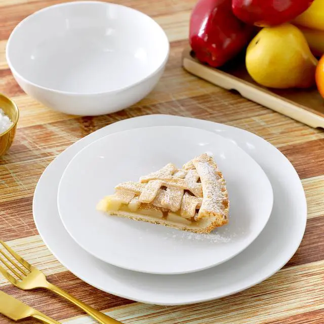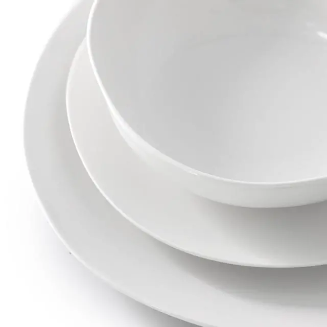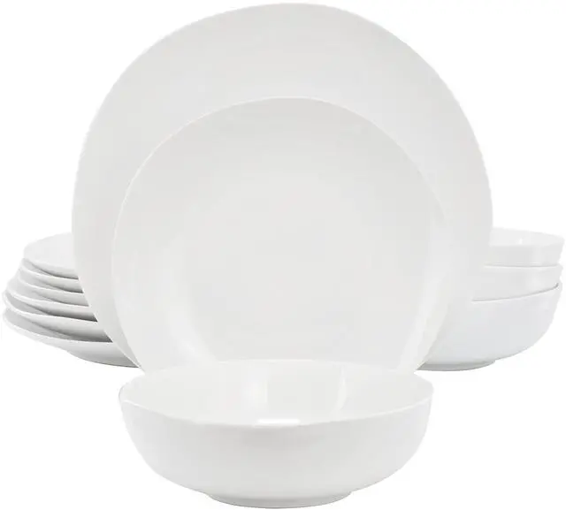 Elevate your dining experience with the Gibson Home Aspen Drift 12 Piece Organic Round Ceramic Dinnerware Set in White. Crafted from durable ceramic with a glossy finish, each piece features a modern organic round shape and a crisp white color that suits any table setting. The set's sleek design offers a fresh, contemporary look while remaining versatile enough for both casual meals and formal gatherings. Its sturdy construction ensures it will stand up to daily use.
