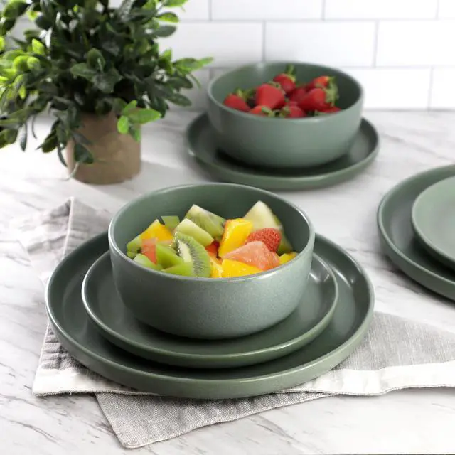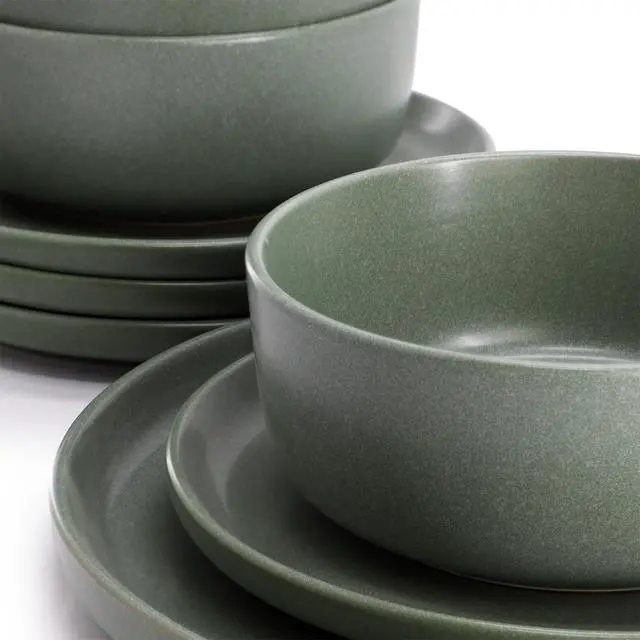 Add contemporary elegance to your table with the Soho Lounge Bryant Park 12 Piece Reactive Stoneware Dinnerware Set in Sage Green. Perfect for everyday dining or special occasions, this modern dinnerware set includes 12 essential pieces, offering service for four with a clean, stylish look.