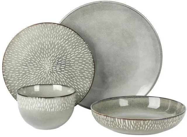 Bring style and artisanal quality to your dinner table with this Gibson Elite Matisse 16 Piece Stoneware Dinnerware Set. With this set, you'll receive four of each dinner plates, dessert plates, dinner bowls, and cereal bowls which is perfect for serving every course. Each dish has a beautiful reactive glaze finish and hand painted lined pattern to make each one unique. This set is even dishwasher and microwave safe making it great for everyday use and super easy to clean up. Add this gorgeous dinnerware set with service for four to your table today.