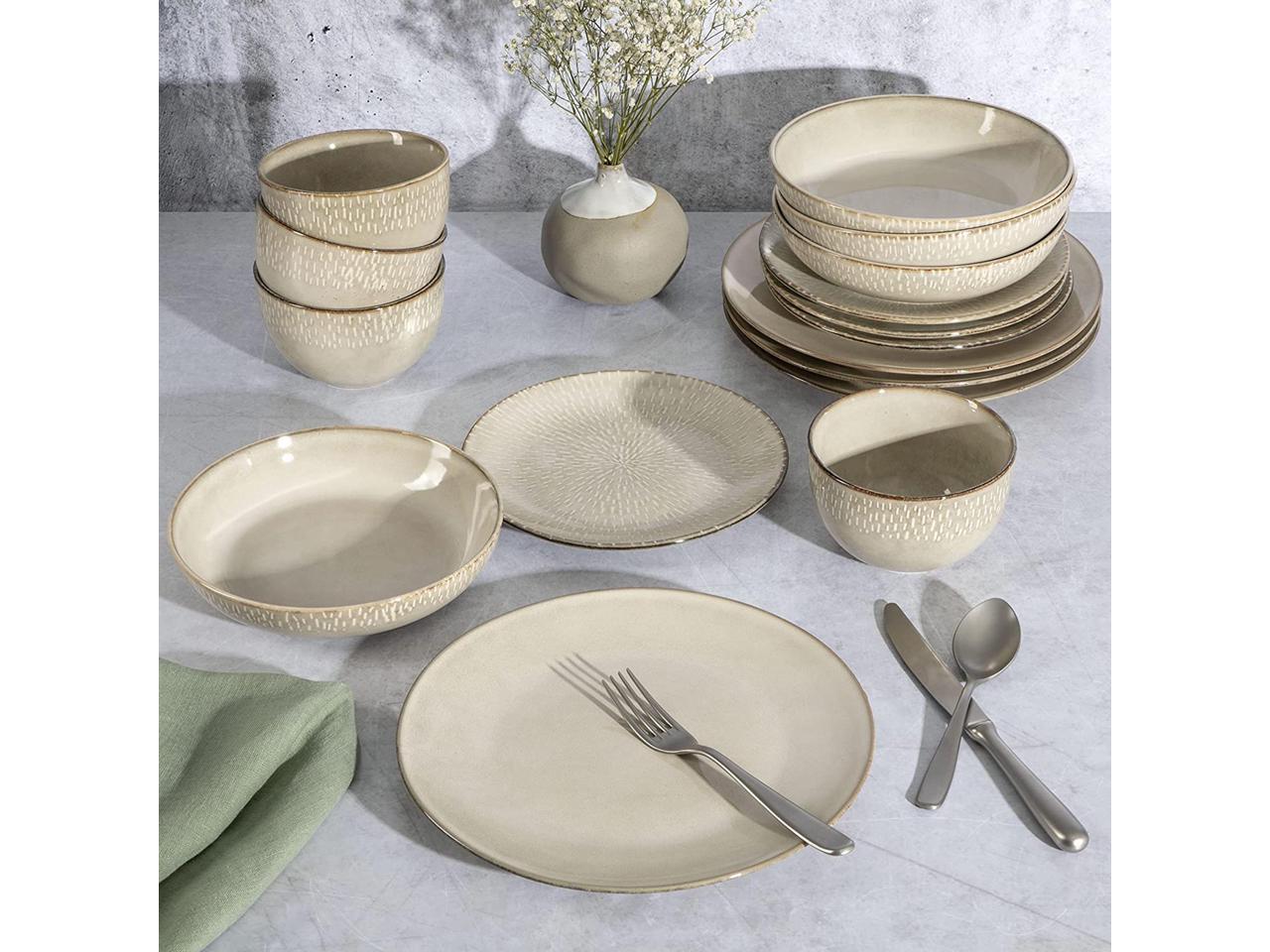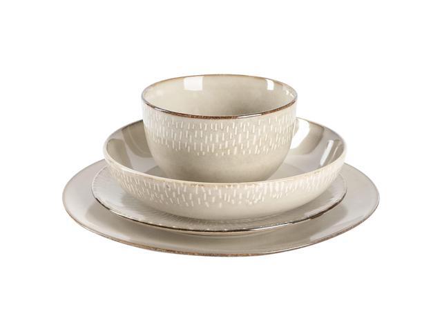 Gibson Elite Matisse 16 Piece Stoneware Dinnerware Set in Cream with Reactive Glaze
