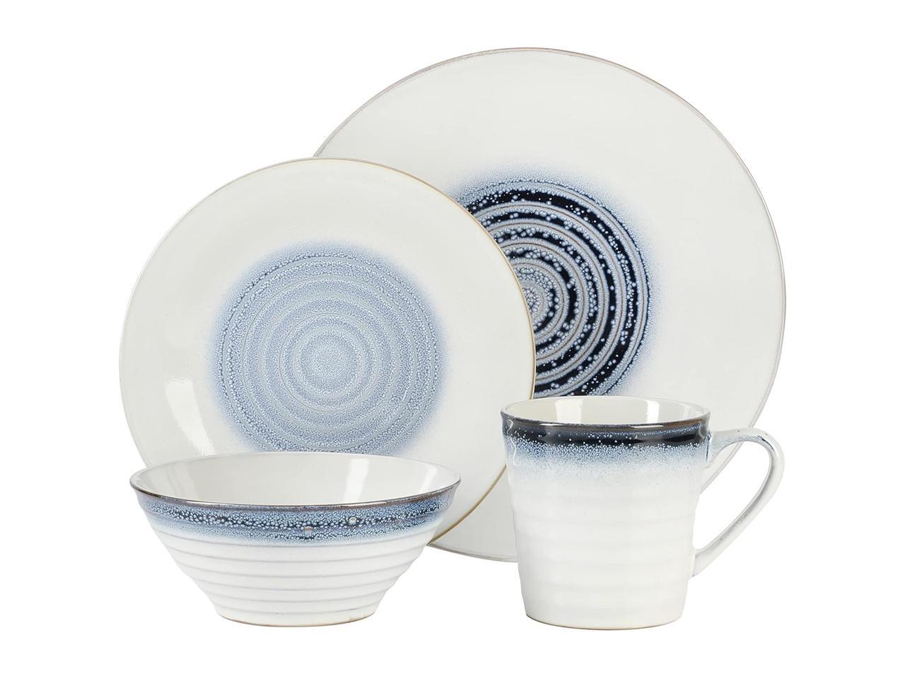 Gibson Elite Spiral Embossed 16 Piece Stoneware Dinnerware Set in Blue