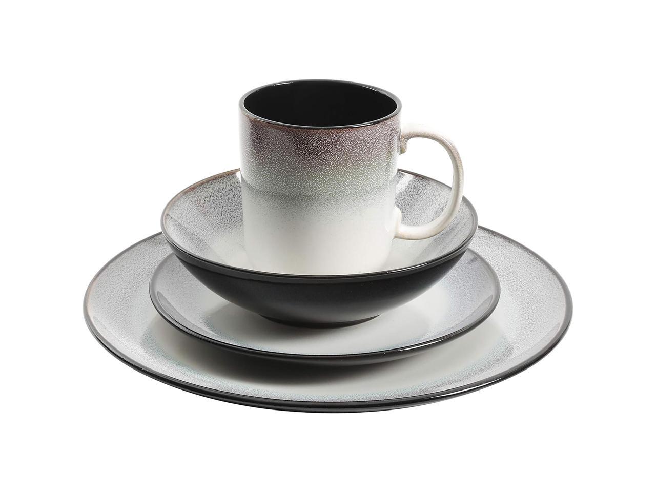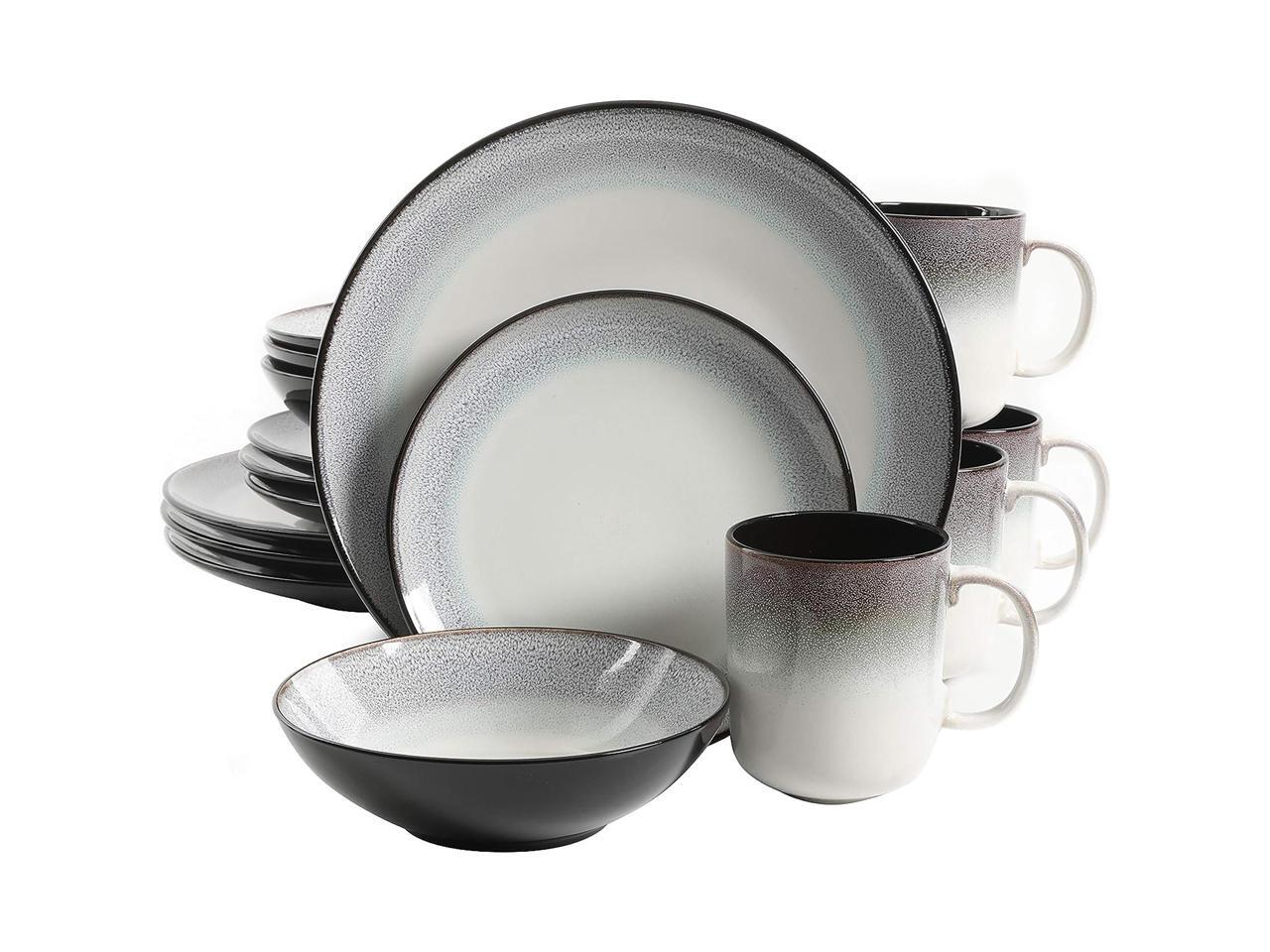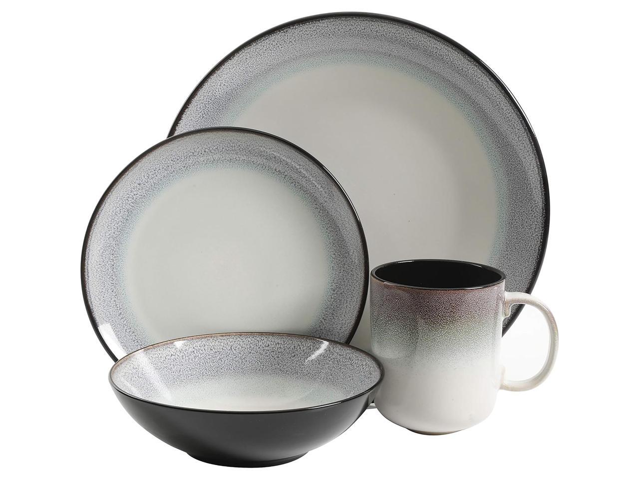 Gibson Elite Rings of Saturn 16 Piece Reactive Glaze Stoneware Dinnerware Set in Teal