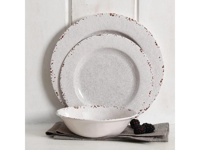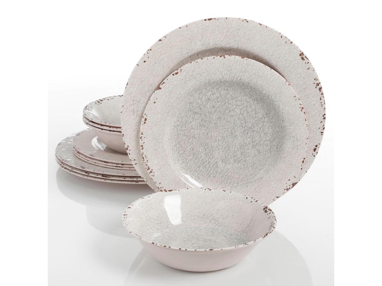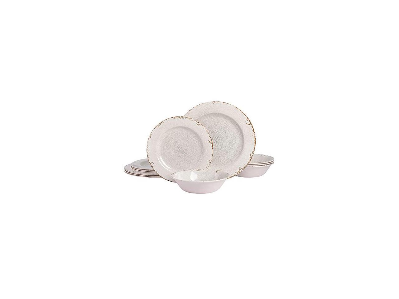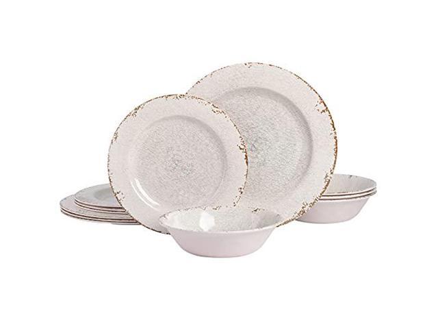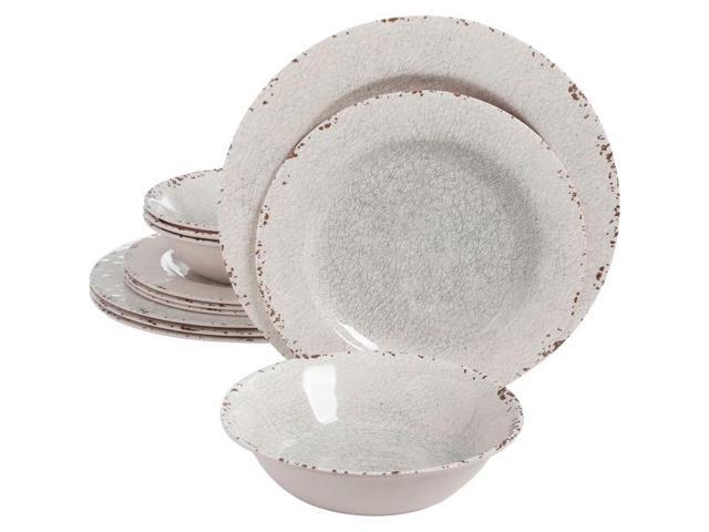 Gibson 114334.12 Muana Melamine Crackle 12 Piece Dinnerware Set Ice