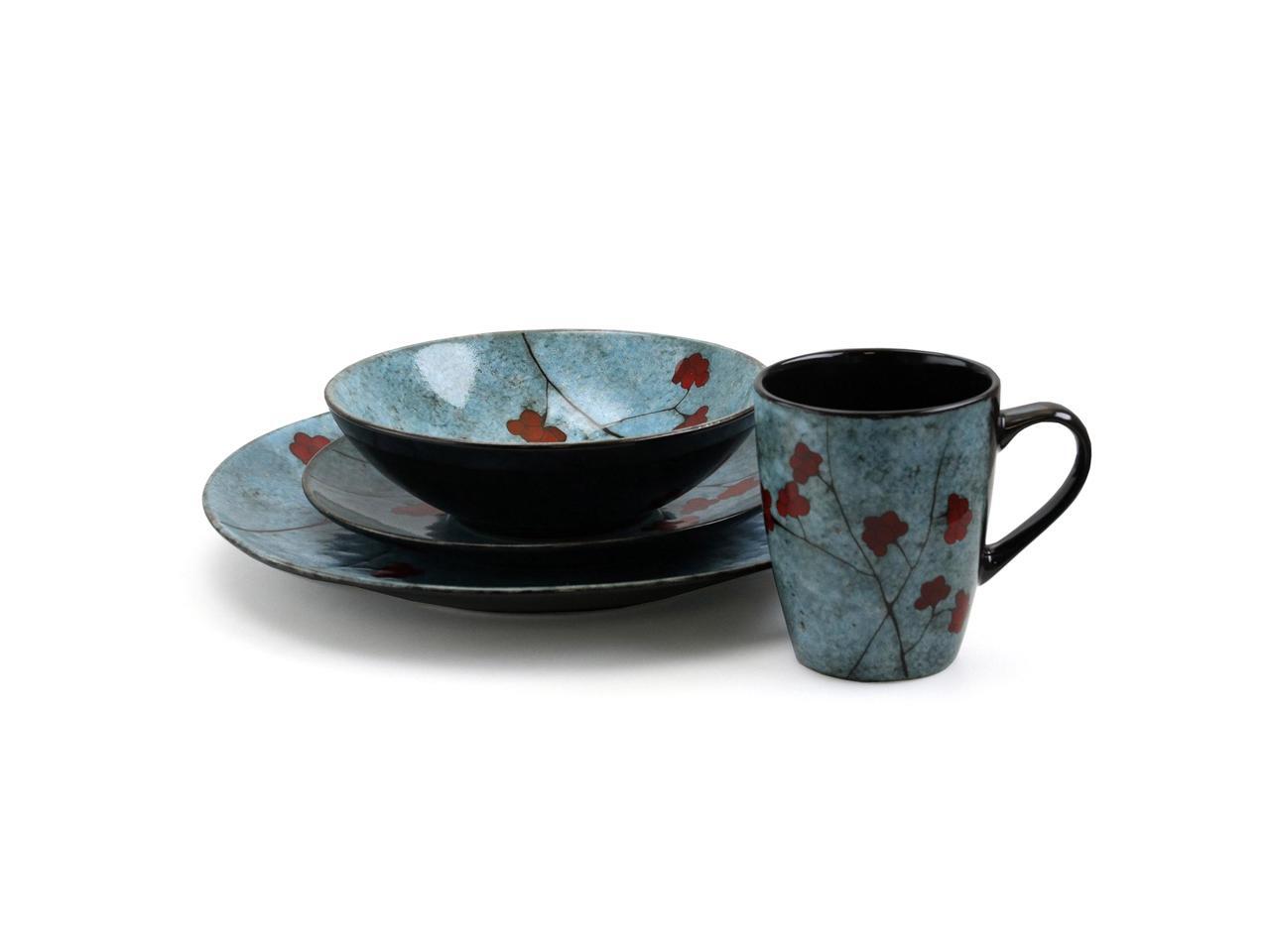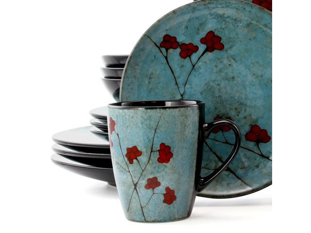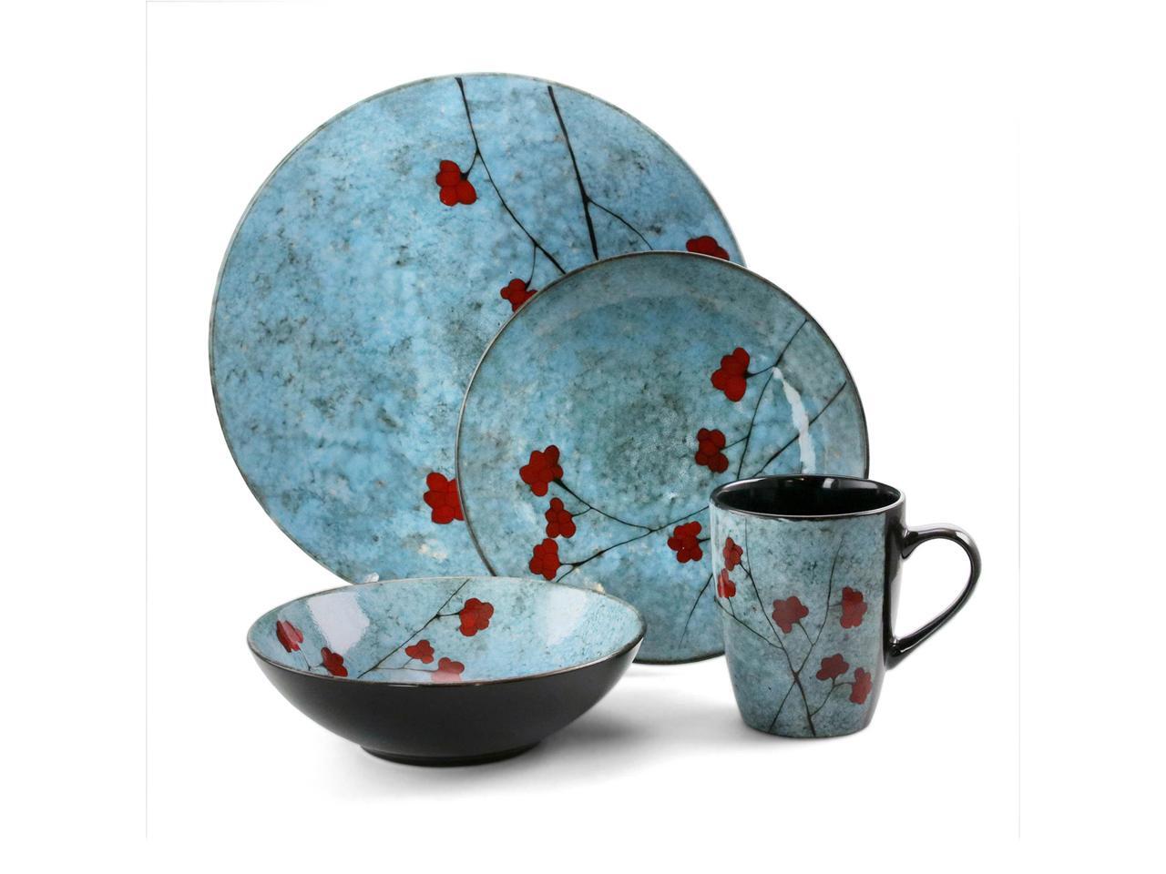 Elama Floral Accents 16 Piece Dinnerware Set in Blue