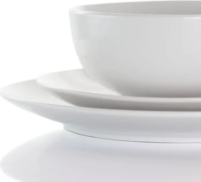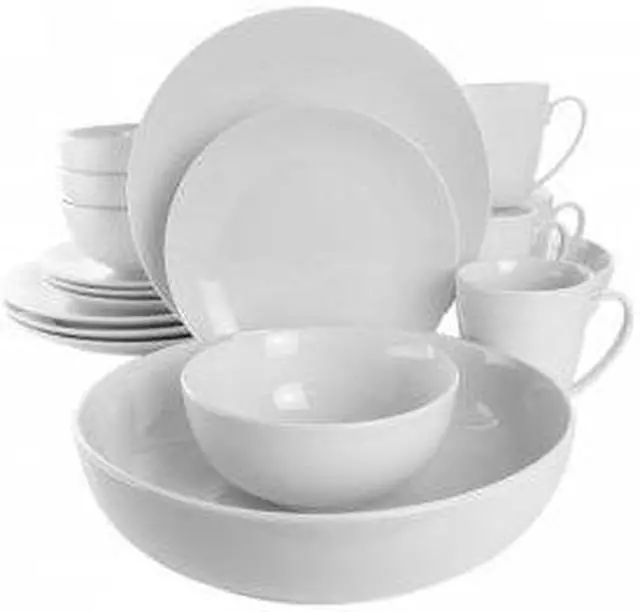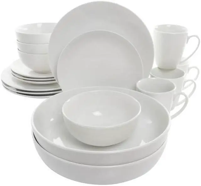 Add a touch of elegance and class with the Elama Owen 18 Piece Porcelain Dinnerware Set with 2 Large Serving Bowls in White. This beautiful timeless fresh plate set goes great with any setting for every occasion. Allowing for you to display your meal effortlessly, this service set for four includes two large serving bowls ideal for rice, salad, pasta and stews, show off your culinary greatness. Constructed of Porcelain, this durable tableware set is sure to last through your most memorable meals.